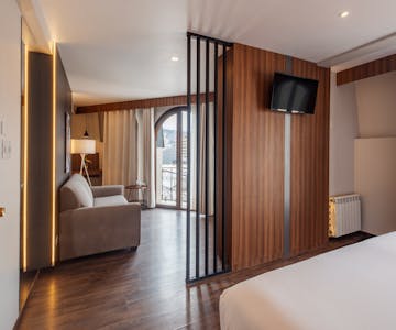 Enjoy the spaciousness and comfort of our King Suite, featuring an extra-large bed designed to ensure your rest. With a contemporary design and cozy details, this room provides the perfect setting for both business trips and romantic getaways. It includes a work desk, TV, Wi-Fi, and a private bathroom with exclusive amenities.